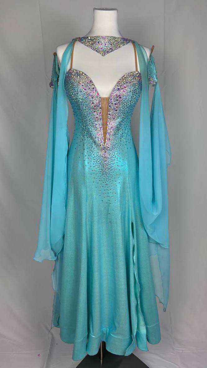Graceful. Bold. Majestic.Soar across the dance floor in the breathtaking Blue Wings 💙 Ballroom Dress by Elle Atelier. This elegant masterpiece combines fluid design with radiant detail — crafted from premium mixed fabrics and adorned with high-quality rhinestones that sparkle with every graceful ...