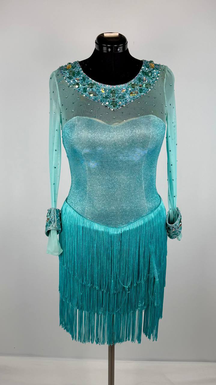 Sparkle with Magic in the Enchanting "Fairy Turquoise" Latin/Rhythm Dress đź§šUnleash grace, energy, and charm in this captivating turquoise Latin/Rhythm dress. Crafted from flowing mixed fabrics and adorned with dazzling rhinestones, this stunning gown shimmers with every movement, ensuring you lig...