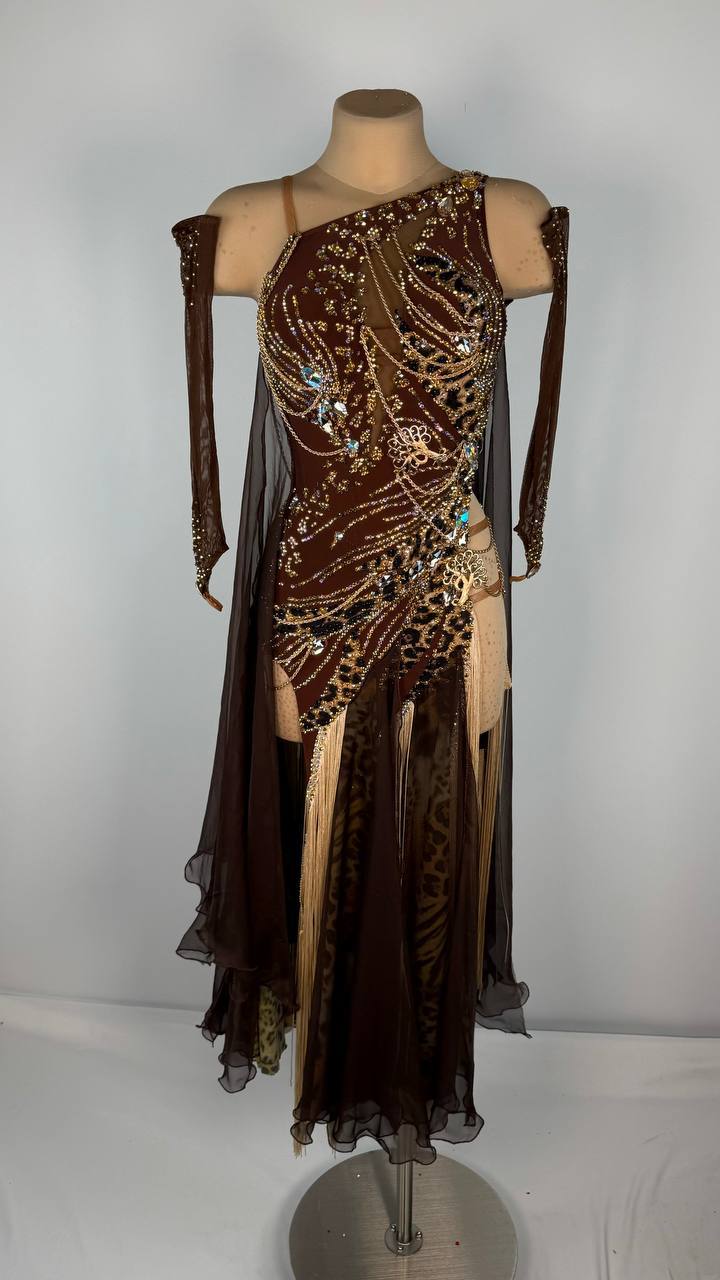 This striking Sexy Tiger 🐅 Smooth Dress is a fierce statement for dancers between 5'4" and 5'6". The bold brown and cheetah animal print design is crafted with premium mixed fabrics and adorned with high-quality stones, ensuring you stand out on the dance floor. In like-new condition, this dress ...