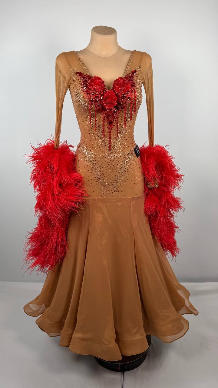 This alluring Skin Feel ❤️🔥 Ballroom Dress is a bold and sultry choice for dancers between 5'5" and 5'9". Designed by the prestigious Arti brand, it showcases a striking nude and red color palette, crafted from premium mixed fabrics, and adorned with dazzling high-quality stones and delicate feat...