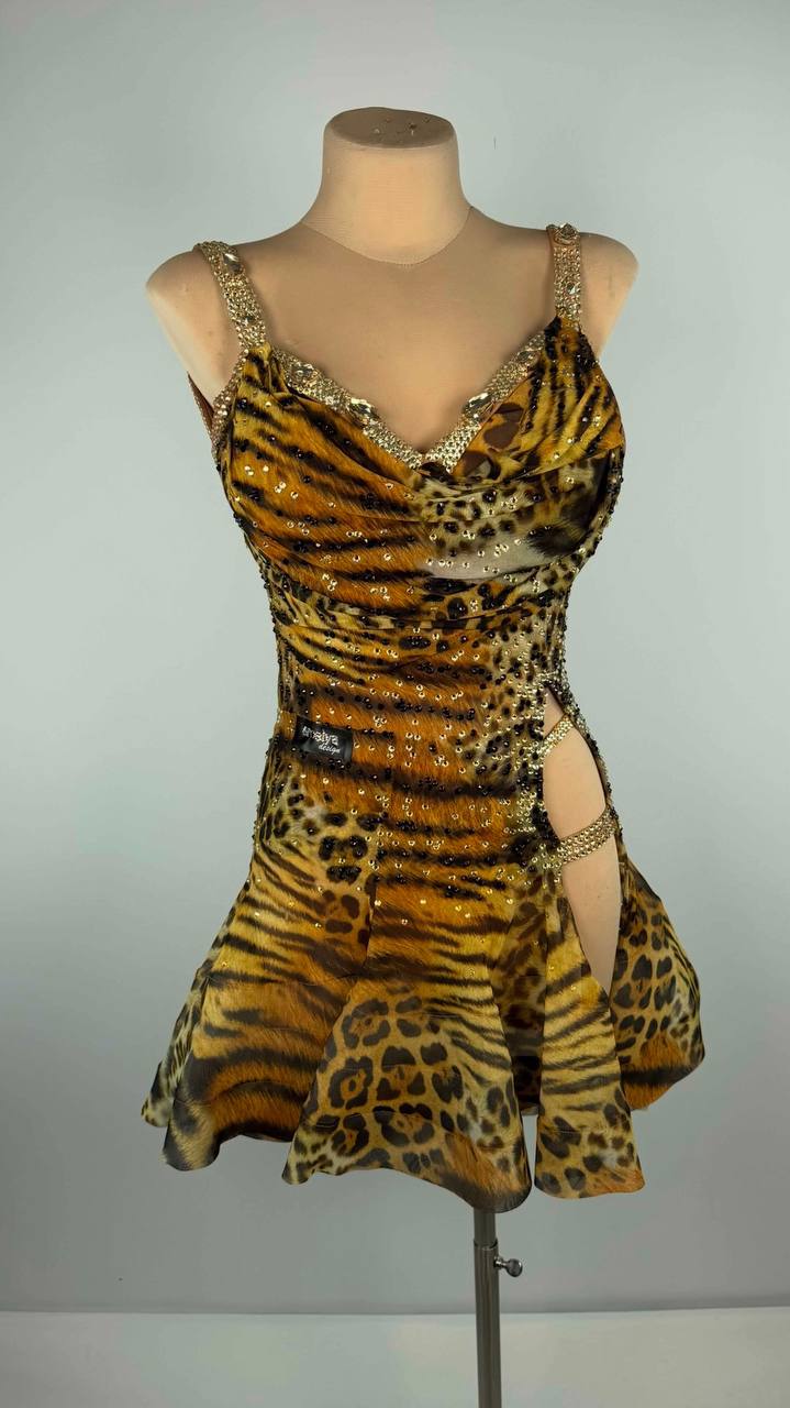 Exude bold elegance in the daring and fierce Spicy Cheetah 🐆 Latin/Rhythm dress by Emelya Design. Made from high-quality mixed fabrics and adorned with sparkling stones, this cheetah-print creation shines with every step, ensuring you captivate the audience effortlessly. Designed for dancers betw...
