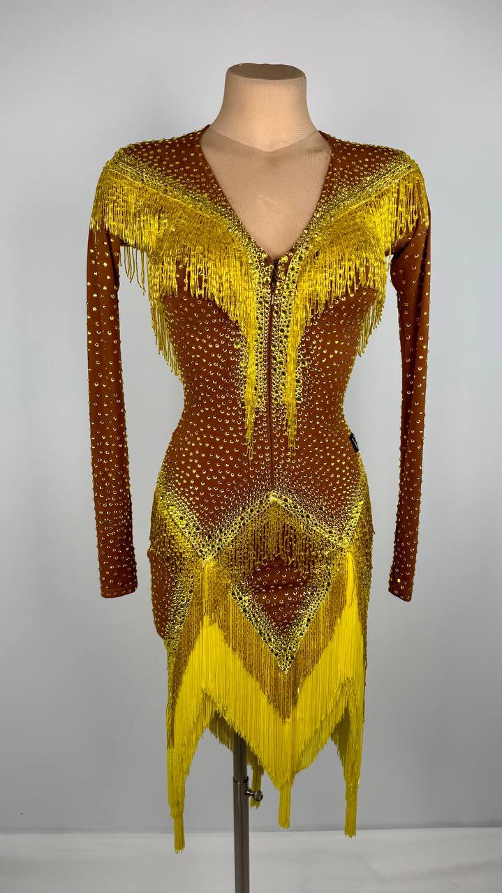 Glow with warmth, radiance, and energy in the breathtaking Sun Tan ☀️ Latin/Rhythm dress by VESA. Featuring a stunning blend of nude and yellow tones, this exquisite piece captures the essence of sunshine and elegance. Crafted from premium mixed fabrics and adorned with dazzling high-quality rhin...