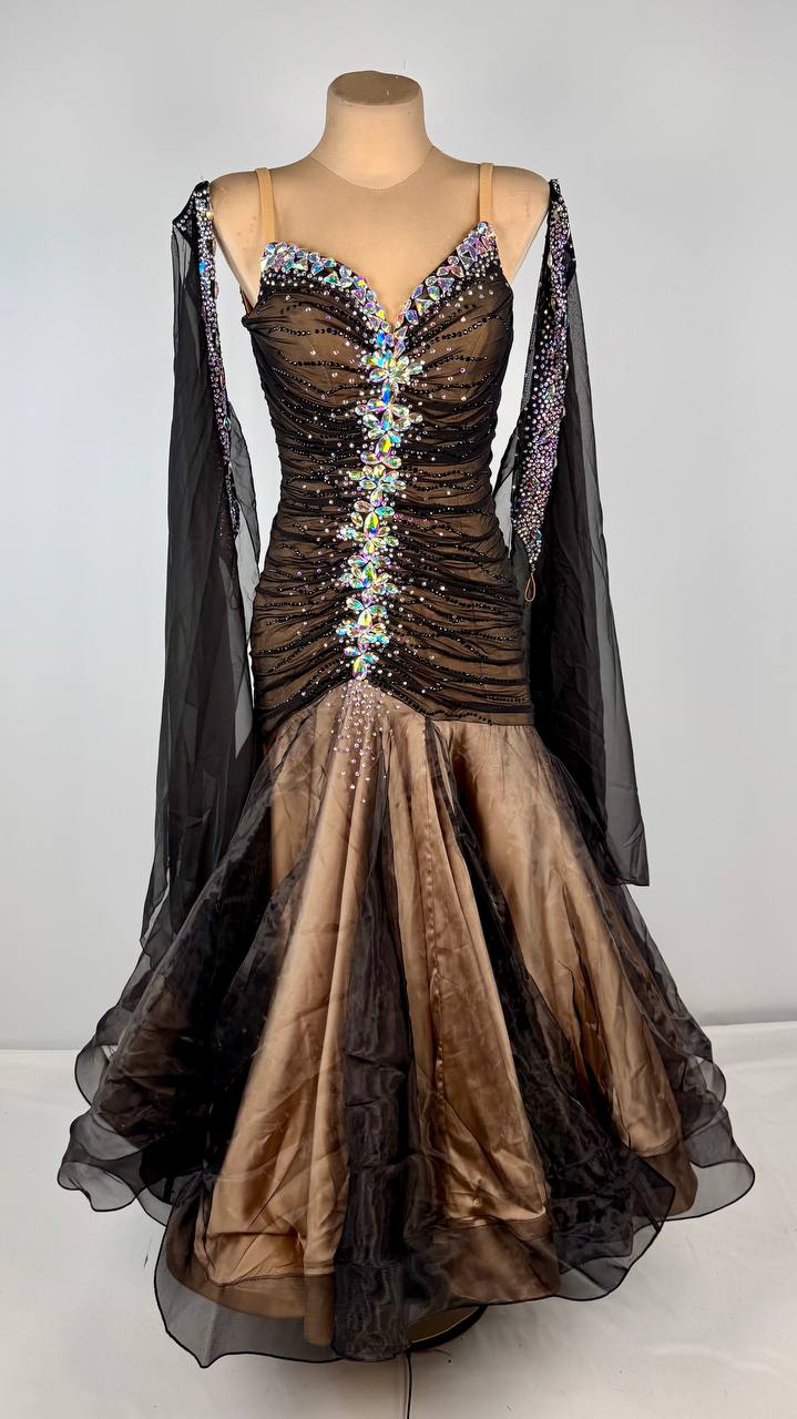 Elegant. Refined. Enchanting. Exude timeless sophistication in the Gentil Lady 🖤 ballroom dress by Gentil, Japan 🇯🇵. Crafted with precision from luxurious mixed fabrics and adorned with high-quality rhinestones, this black beauty offers a sleek silhouette that glistens gracefully under the spotli...
