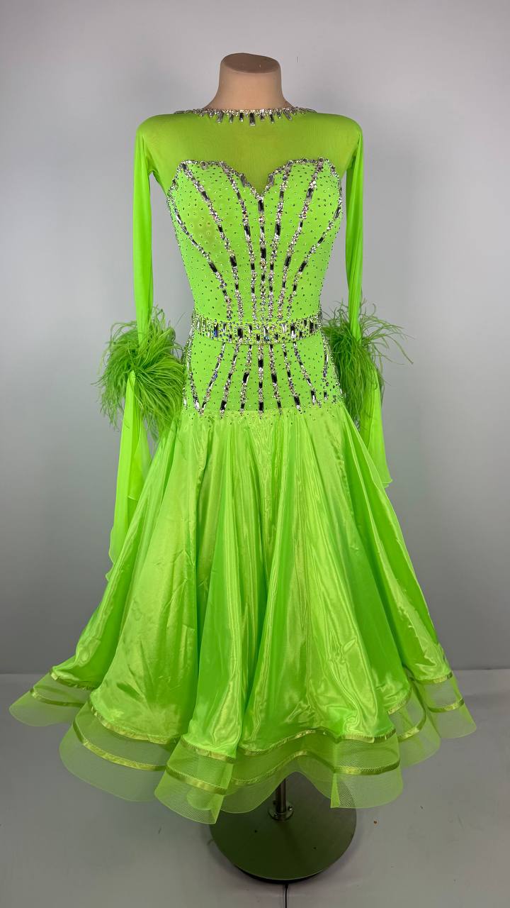 Exude vibrant sophistication in the striking and dynamic Neon Style ⭐️ ballroom dress by Lenique. Crafted from premium mixed fabrics and embellished with high-quality stones, this fluo green masterpiece lights up the dance floor, ensuring you captivate every gaze with your elegant movements. Desi...