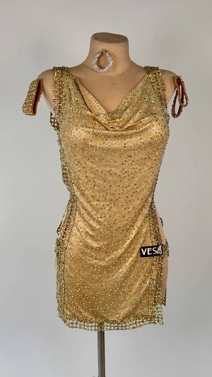 Step into the spotlight with Golden Bounce 🀎, a luxurious Latin/Rhythm dress by VESA that blends timeless elegance with irresistible energy. Drenched in rich gold and adorned with high-quality stones, this masterpiece crafted from mixed fabrics glimmers with every movement, bringing life and rhythm to the dance floor.