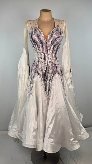 Ignite the floor with ethereal beauty in Light Flame 🤍, a ballroom dress that radiates purity, passion, and elegance. This breathtaking white gown is crafted from luxurious mixed fabrics and adorned with high-quality rhinestones that catch the light with every step, creating a soft, luminous glow as you move. Designed for dancers between 5'2" and 5'6", and in used-like new condition, it offers a flawless fit for sizes S/M—combining comfort, sophistication, and show-stopping style. Whether you're competing or performing, let Light Flame elevate your presence and leave a lasting impression with its graceful brilliance.
