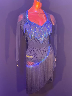 Exude mesmerizing sophistication in the Midnight Leaves πŸŒƒ Latin/Rhythm Dress by Flashdance. This brand-new masterpiece is a breathtaking blend of elegance and allure, crafted with mixed fabrics and adorned with high-quality stones that sparkle like the night sky. The intricate black and blue design evokes the beauty of midnight foliage, ensuring you captivate every eye with your movements.