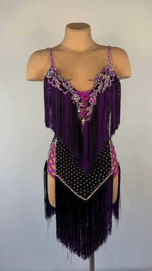 Unleash bold elegance in the vibrant and captivating Purple Mischief ๐ Latin/Rhythm dress. Crafted from premium mixed fabrics and adorned with high-quality stones, this striking purple masterpiece shimmers with every move, ensuring you command the audience's attention effortlessly.