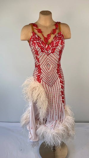 Designed for dancers between 5'5" and 5'8" (Size S/M), this gown is in used-good condition, offering comfort, style, and eye-catching elegance. Elevate your performance with the fiery charm of this unique dress and make every moment on the dance floor unforgettable!
