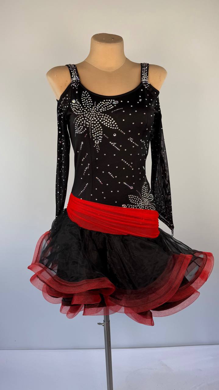 Radiate Passionate Elegance in the Velvet Rose 🌹 Latin/Rhythm DressUnveil your inner fire with this romantic, bold, and luxurious Velvet Rose 🌹 dress by Grand Amour. Crafted from premium mixed fabrics and adorned with high-quality stones, this stunning black and red creation captures the essence ...
