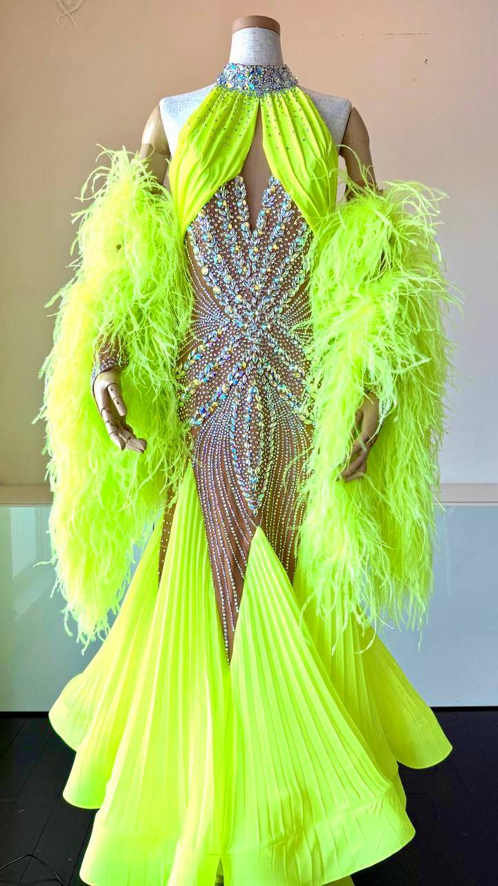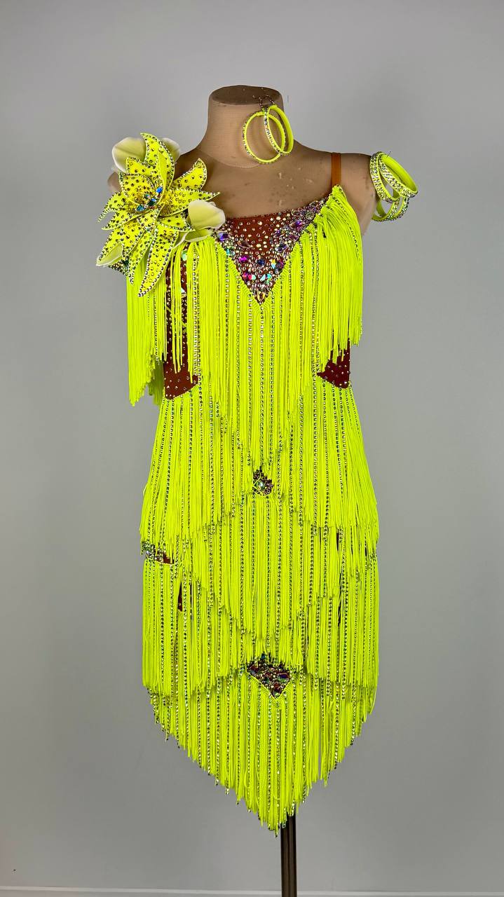 Radiate vibrant confidence in this bold and refreshing Latin/Rhythm dress by Gentil Japan 🇯🇵. The Gentil Tropical 🌴 is a fresh, exotic, and electric statement piece designed to ignite the dance floor. In a dazzling lime green hue, this brand-new Latin/Rhythm dress is crafted from luxurious mixed ...