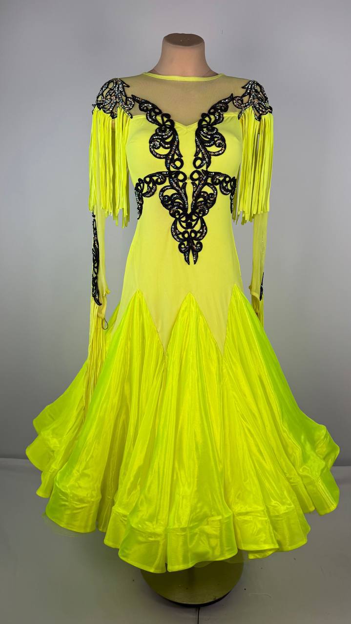 This vibrant Lime Style 🍋🟩 Ballroom Dress is a bold and dazzling statement piece for dancers between 5'3" and 5'7". Crafted by Chrisanne, this fluo yellow dress features luxurious Chrisanne fabrics and sparkling Swarovski stones that radiate energy and elegance on the dance floor. In like-new con...
