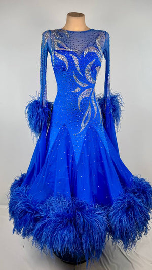 Radiate sophistication and charm in the enchanting Silver Leaves ✨ ballroom dress by AD 🇬🇧. A perfect fusion of elegance, fluidity, and sparkle, this captivating blue gown is crafted from luxurious mixed fabrics and adorned with high-quality rhinestones that shimmer like dew-kissed leaves in the spotlight. Designed for dancers between 5'2" and 5'6" and in used-like new condition, it offers a graceful fit for size S/M while providing both comfort and striking style. Let Silver Leaves elevate your performance and leave a lasting impression with every graceful turn on the dance floor.