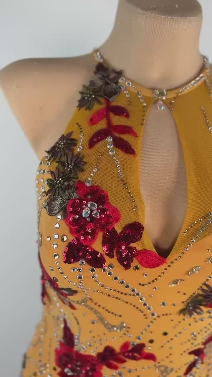 This Radiant Smooth Honey 🍯 smooth dress is a dazzling masterpiece for dancers between 5'5" and 5'8". Featuring a striking saffron and red design, this gown is crafted from premium mixed fabrics and adorned with shimmering stones that flow gracefully with every movement. In used-like-new condition, it’s perfect for M/L sizing, blending warm tones, timeless elegance, and unparalleled comfort to make you shine during your next smooth performance.