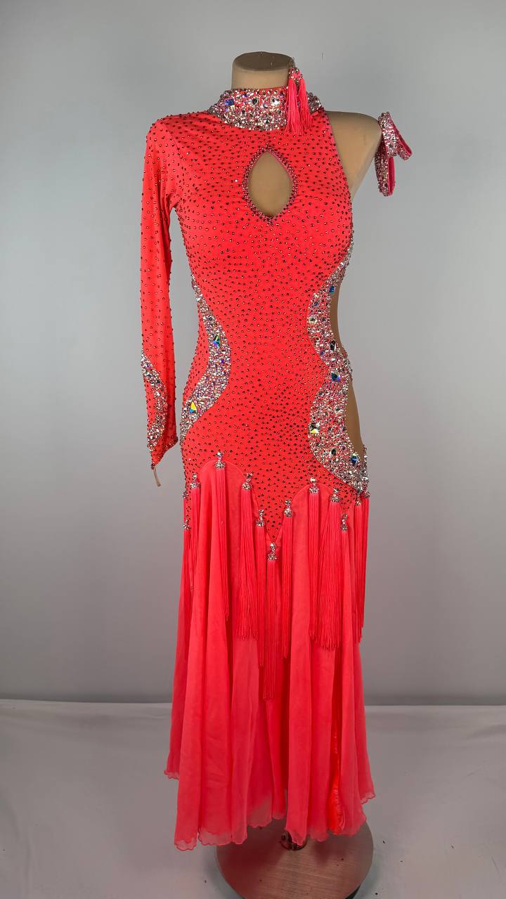 Glow with Grace in the Radiant "Smooth Peach" Smooth Dress 🍑 Embody elegance, softness, and charm with this stunning smooth dress by RS 🇮🇹. Featuring a delicate peach hue, this gown is adorned with high-quality rhinestones, ensuring you sparkle with every step and turn. Designed for dancers betwe...