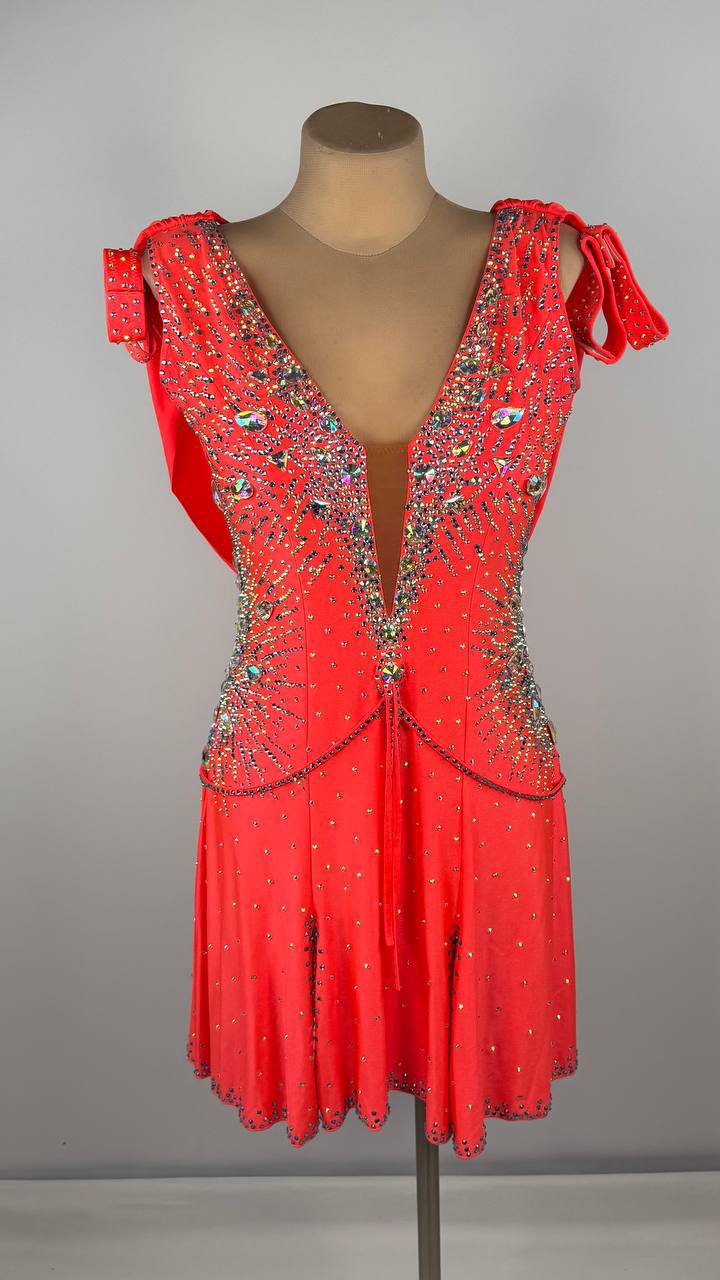 Grace the Floor in the Salmon Pink 🍣 – Latin/Rhythm Dress. Exude softness and charm in this elegant and playful Latin/Rhythm dress. Crafted from premium mixed fabrics and adorned with high-quality rhinestones, this delicate salmon masterpiece sparkles with every move, ensuring you captivate the a...