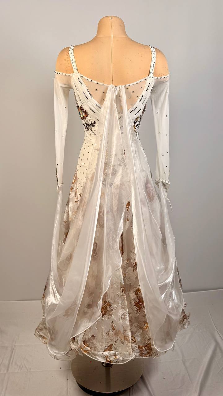 Step onto the floor with the graceful charm of the Amber Petal Ballroom Dress, a stunning blend of sophistication and soft beauty. Crafted from mixed premium fabrics and adorned with high-quality rhinestones, this luminous white gown sparkles subtly with every movement, creating an elegant and refined stage presence. Its flowing silhouette adds a touch of lightness, making every glide feel effortless and enchanting.