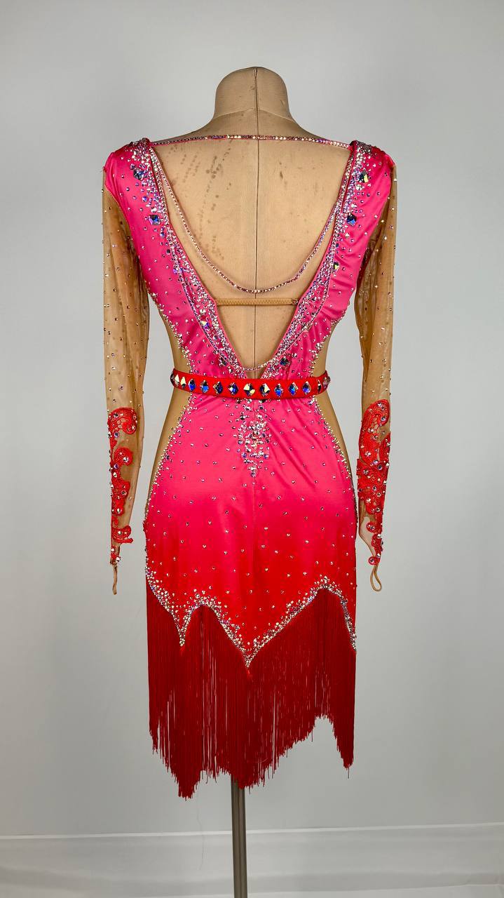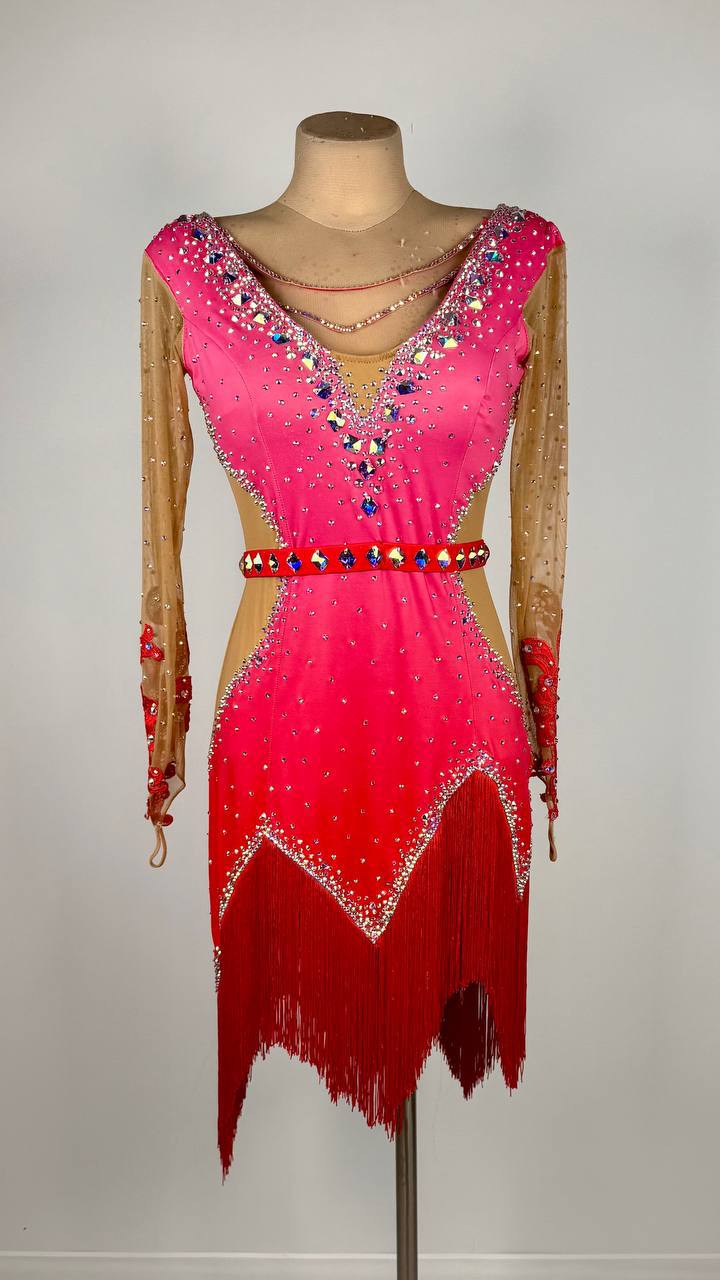This vibrant Bubble Gum 💕 Latin/Rhythm Dress is a sweet and striking standout for dancers between 163 cm and 173 cm. The playful pink design, made with premium mixed fabrics, moves beautifully on the floor while sparkling high-quality rhinestones add the perfect touch of shine. In like-new condition, this L-size dress is ready to make your next Latin or rhythm performance unforgettable. Fun, flirty, and full of charm.. get ready to shine in every step.