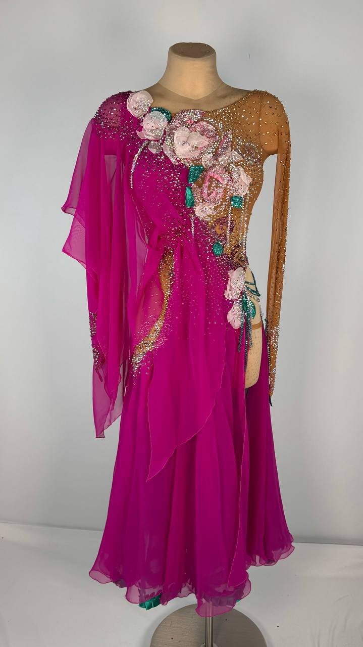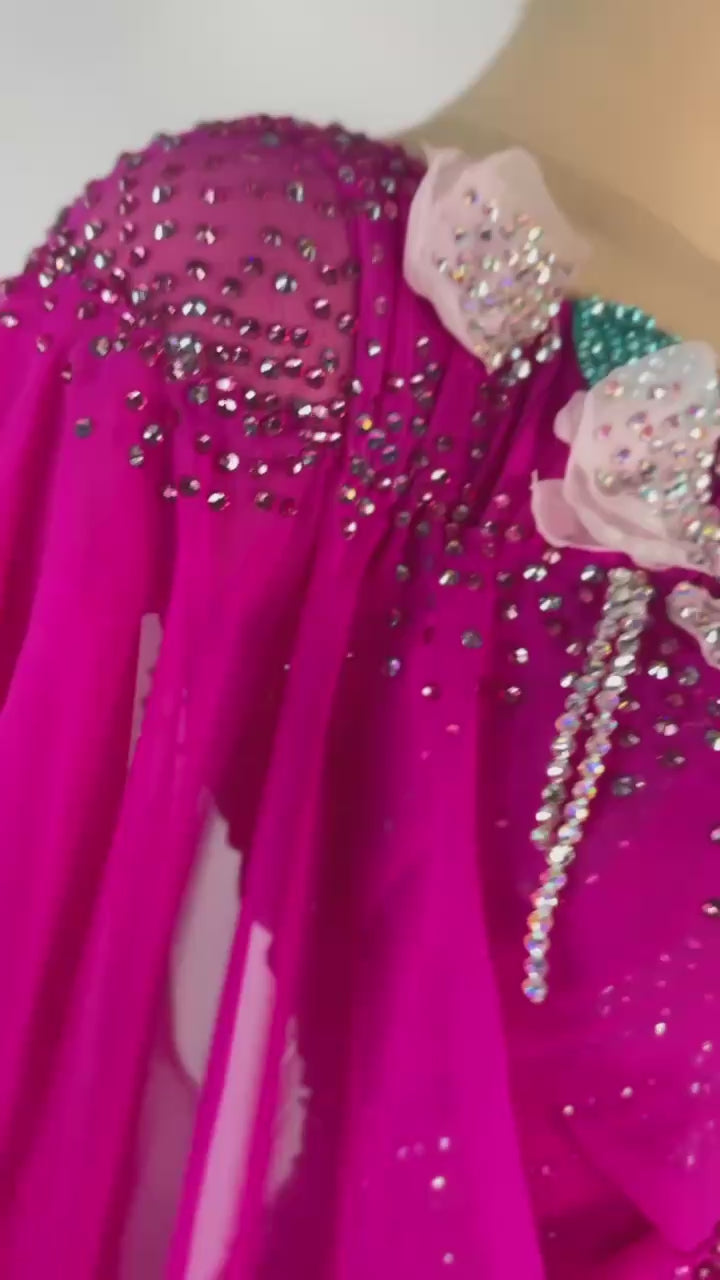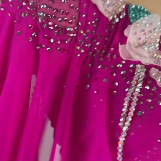 This Radiant Flower Girl 🌺 smooth dress is a show-stopping choice for dancers between 5'4" and 5'6". Designed by Emelya Design, its vibrant electric pink hue is crafted from premium mixed fabrics and adorned with dazzling high-quality stones. In used-like-new condition, this dress is perfect for XS/S sizing, combining bold elegance, lively charm, and exceptional comfort to make you bloom on the dance floor.