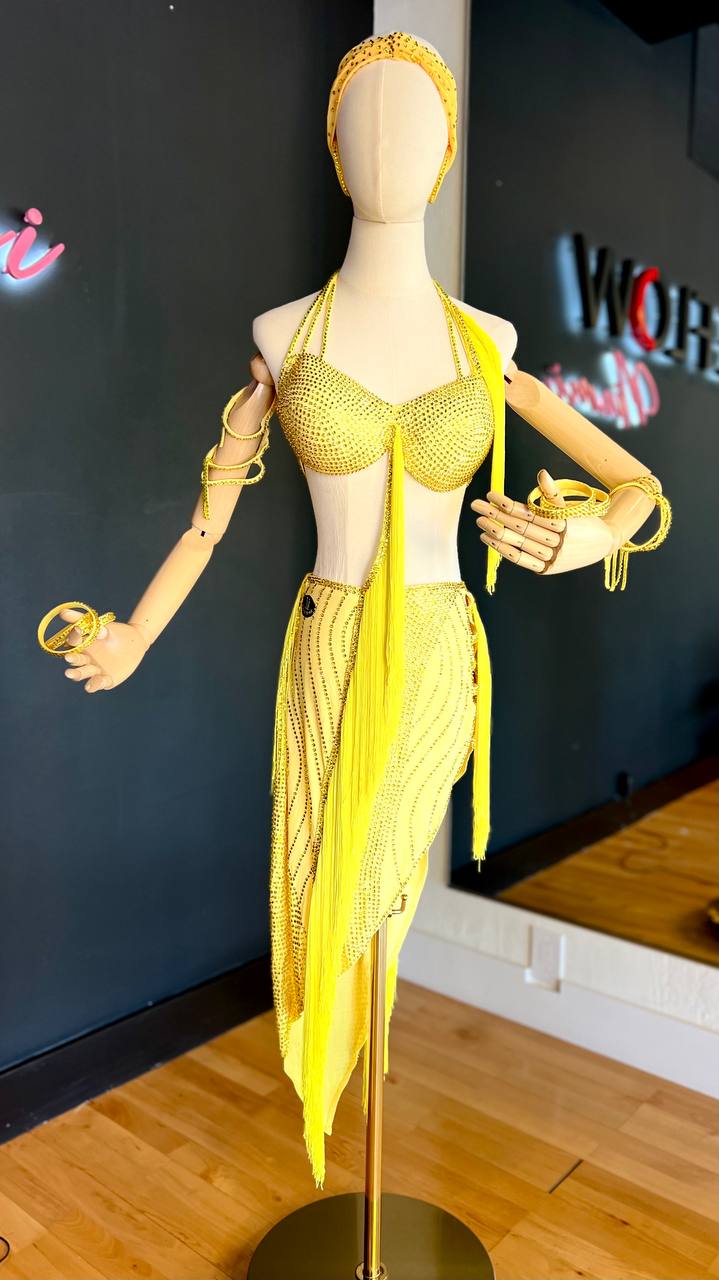 Designed for dancers 5’4”–5’8” (Size S/M), its vibrant yellow color captures energy, confidence, and style.