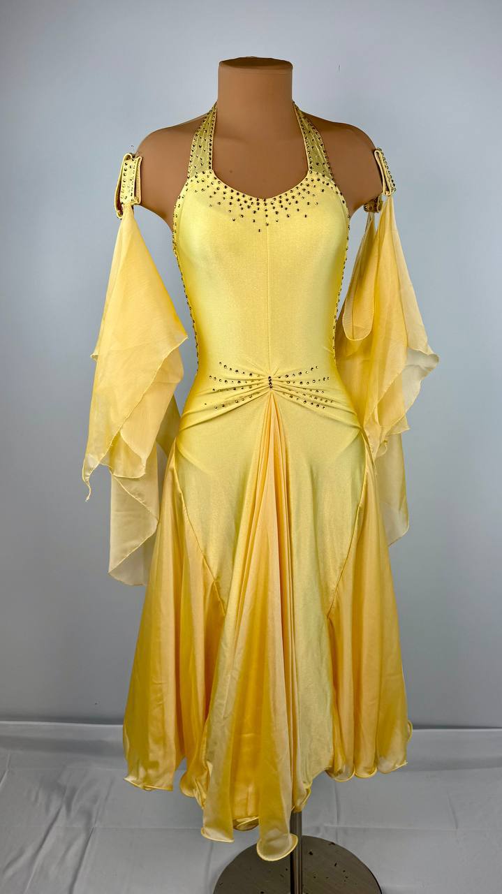 Bring youthful charm to the dance floor with the Junior Lace JUNIOR Ballroom Dress, a lively and elegant choice for young dancers. Crafted from mixed premium fabrics in a cheerful yellow hue, this dress moves beautifully with every step, combining comfort with a touch of sophistication. Its playful design and flowing silhouette make it perfect for shining on stage with confidence and grace.