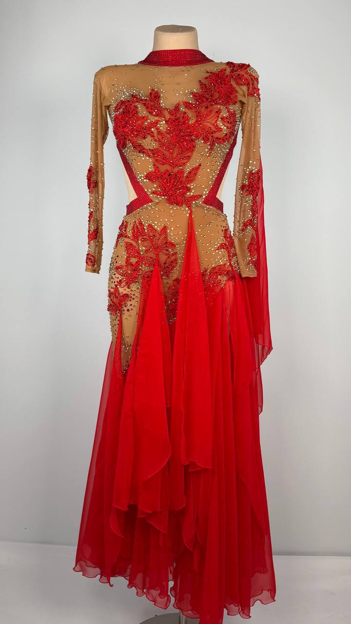 Ignite the Floor in the Fiery Elegance of Passion Cloud ❤️🔥 Unleash your inner diva with this bold, radiant, and seductive smooth dress - Passion Cloud ❤️🔥 a show-stopping creation tailored for dancers who command attention. Drenched in a rich, vibrant red and enhanced with exquisite mixed fabrics and high-quality stones, this dress captures the essence of passion in motion.