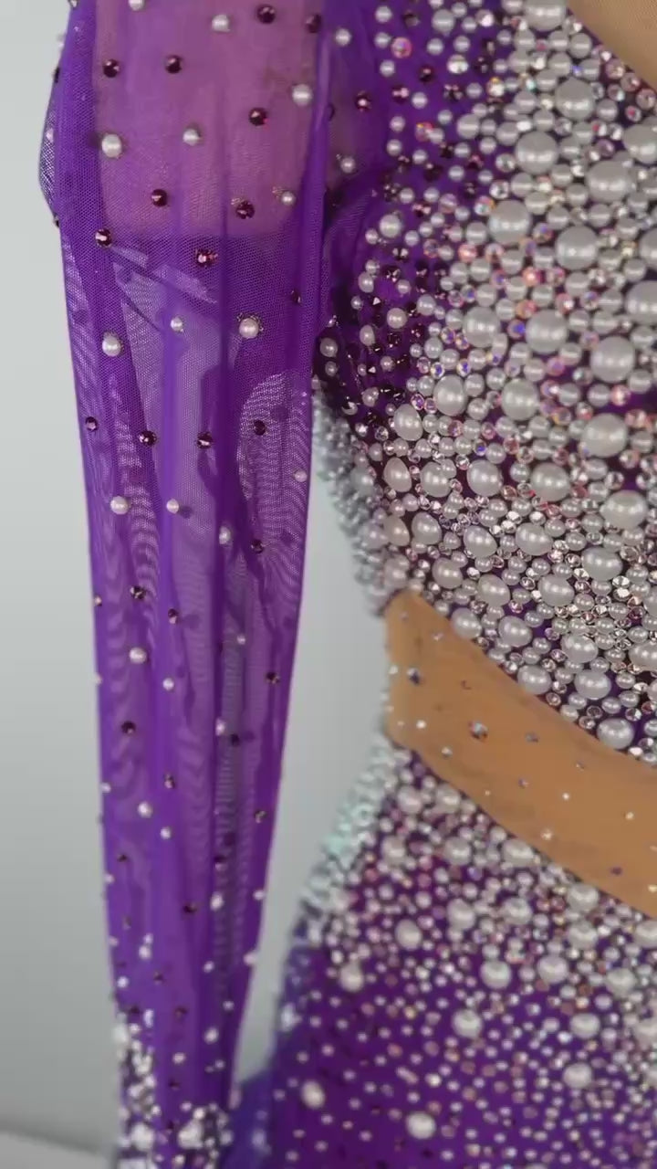 This Purple Pearl ballroom dress is a true showstopper, designed to make you shine with elegant purple allure, dazzling sparkle, and timeless sophistication. Perfect for dancers between 5'5" and 5'9", its rich purple hue and high-quality stones create a breathtaking effect on the floor. Crafted from luxurious mixed fabrics, this dress flows beautifully with every step. In like-new condition, it's an ideal choice for size S dancers who want to captivate and shine during their next performance.