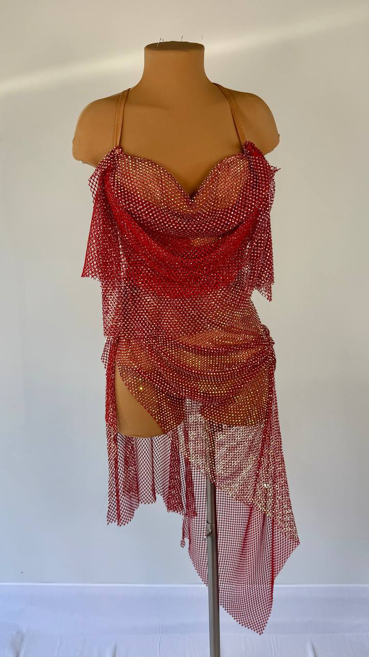 Radiate dazzling brilliance in this stunning and radiant Latin/Rhythm dress, Red Stars ✨. Crafted from luxurious mixed fabrics and adorned with sparkling high quality stones, this vibrant red masterpiece shimmers like a constellation of stars with every movement, captivating all eyes on the dance floor.