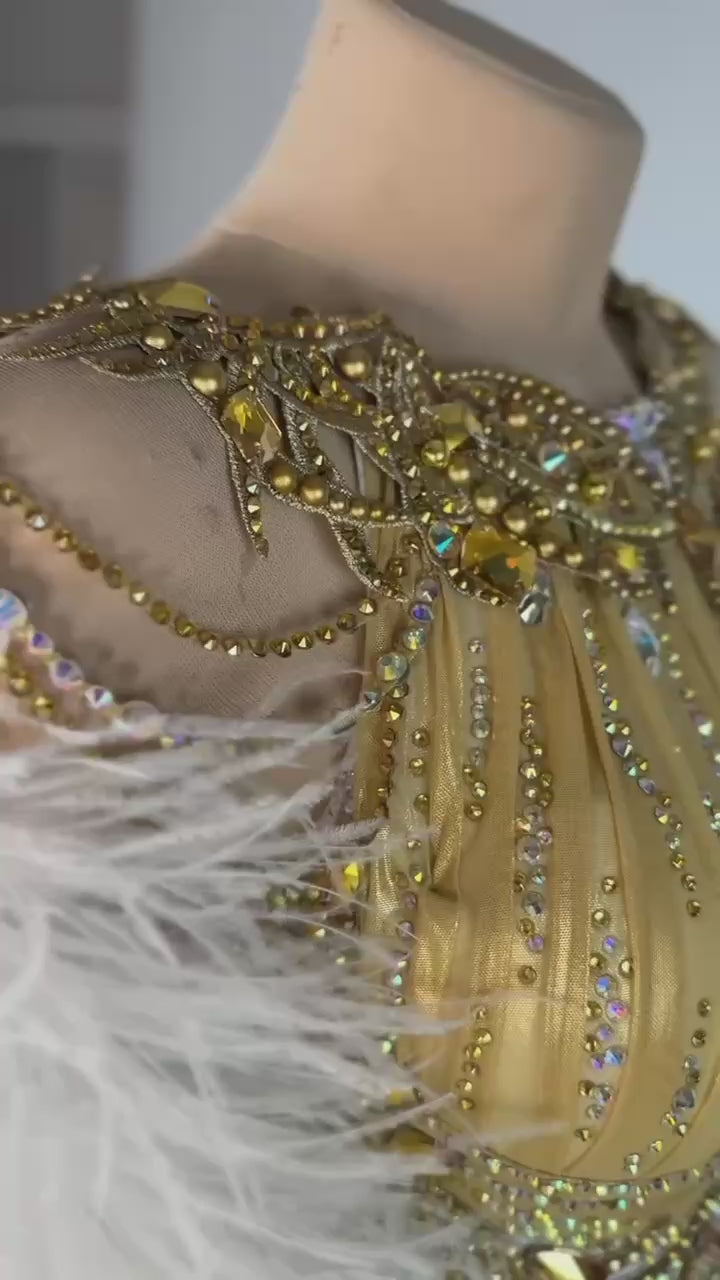 Step onto the dance floor like a true goddess in this Radiant Roman Goddess ✨ ballroom dress. Designed for dancers between 5'6" and 5'10", this exquisite white and gold masterpiece radiates elegance and sophistication. Crafted from premium Chrisanne fabrics and adorned with high-quality stones, it flows effortlessly with every movement. Perfectly suited for Small sizing, this used-like-new dress by DanceDiscover FASHION is a dazzling combination of timeless beauty and modern luxury, ready to make you shine in your next performance. ✨