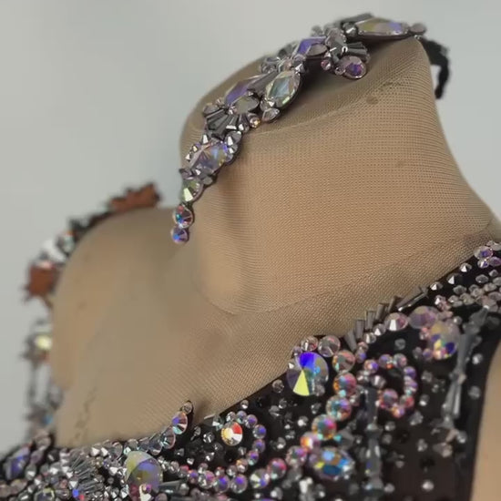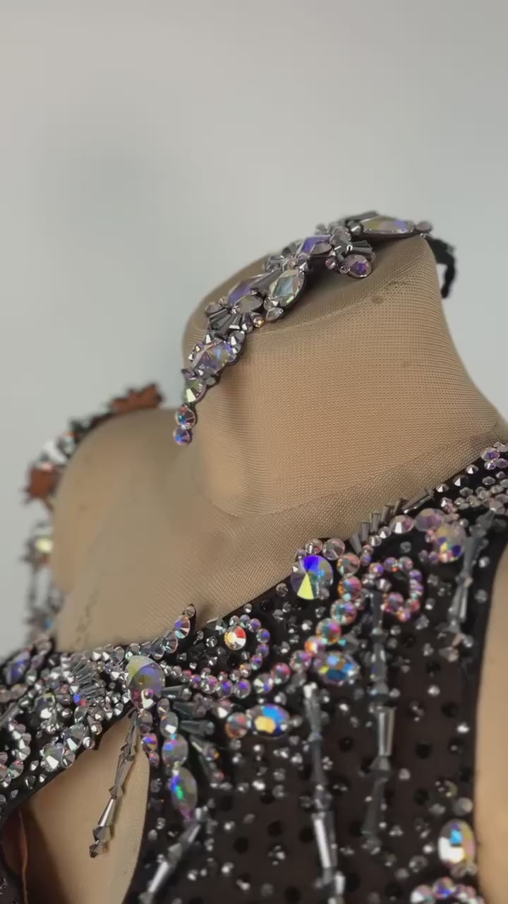 Unleash your inner diva with the Sassy Black Latin/Rhythm dress from Grand Amour. This striking black dress features a sleek silhouette adorned with high-quality stones, exuding confidence and allure on the dance floor.