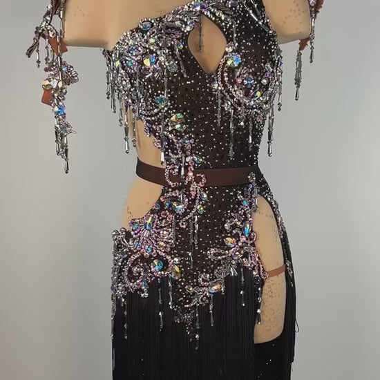 Designed for dancers between 5'4" and 5'7", this used-like new piece combines elegance with a touch of sass. Crafted from mixed fabrics, it ensures comfort and flexibility, allowing you to showcase your bold moves with flair. Get ready to turn heads in this show-stopping dress!