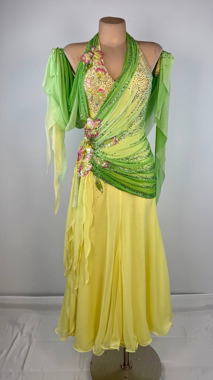 Perfectly made for dancers 5’3” to 5’8”, this used-like new dress offers both comfort and sophistication, allowing you to move with effortless flow. Embrace the magic of Secret Garden - a dress that blooms with confidence, elegance, and timeless allure on every step you take.