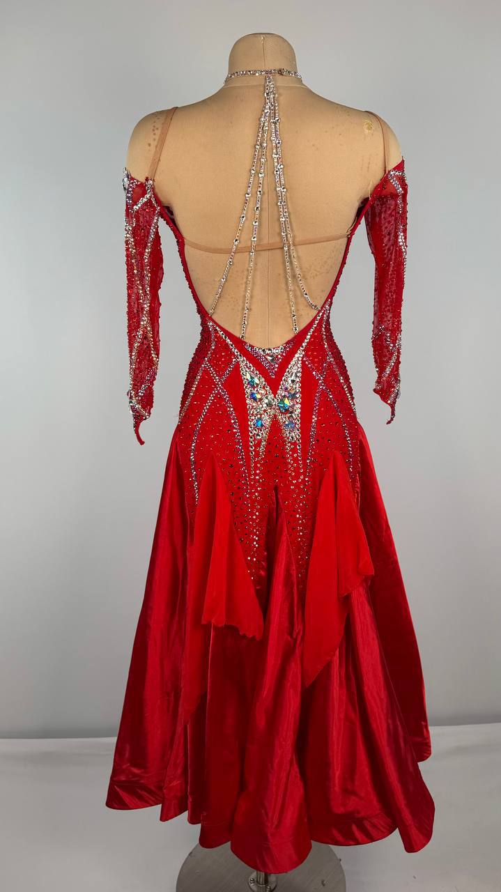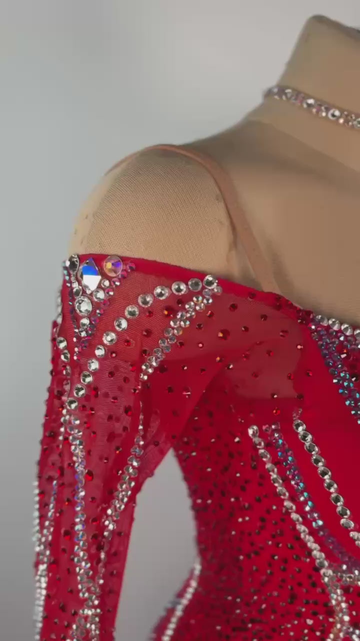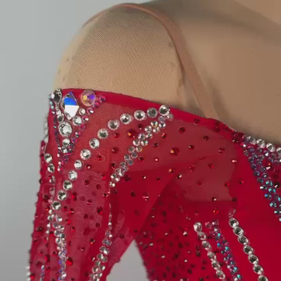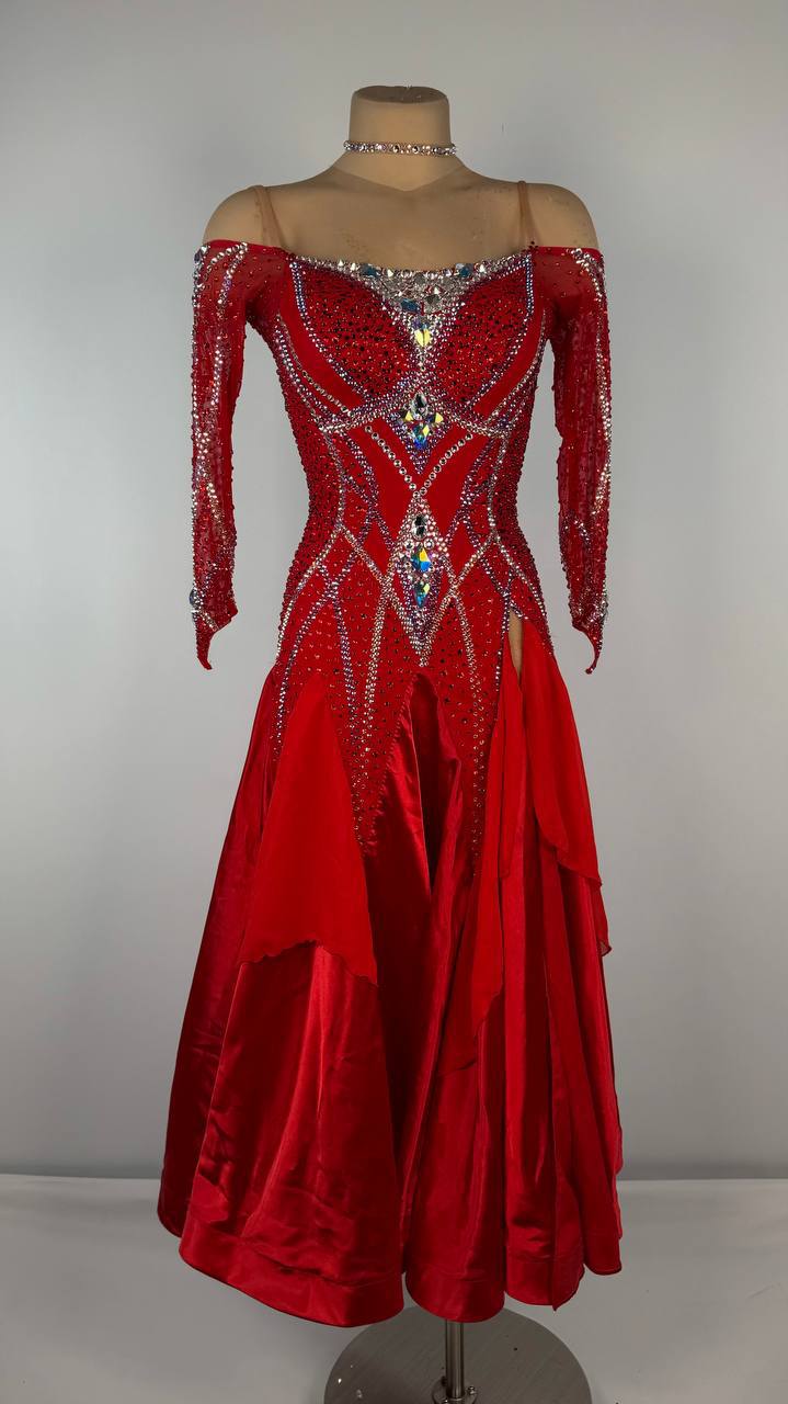 This Fiery Smooth Passion ❤️🔥 smooth dress is a breathtaking choice for dancers between 5'3" and 5'6". Designed by Kalina Design, its vibrant red hue is brought to life with premium mixed fabrics and adorned with dazzling high-quality stones. Perfect for XS/S sizing, this used-like-new gown blends bold elegance, striking charm, and effortless comfort to ensure you shine brilliantly in your next smooth performance.