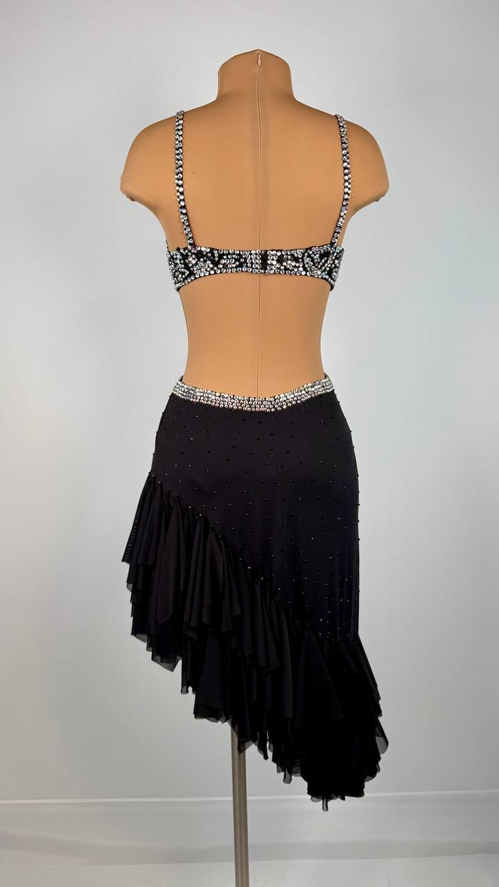 Dance with confidence in the Starry Flamenco 🩷 Latin/Rhythm Dress. Designed in a striking fucsia and black color combination, this dress is made from mixed fabrics and finished with high-quality rhinestones that sparkle beautifully with every move.