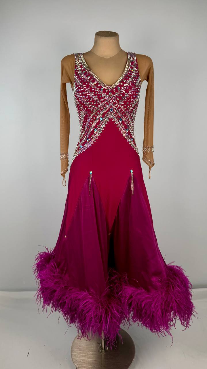 Bold. Elegant. Mesmerizing. Unleash your inner star with the Wine Shine 🍷 — a striking ballroom dress that radiates confidence and sophistication. Crafted from premium mixed fabrics and adorned with high-quality rhinestones, this deep wine-colored beauty glimmers under the lights, ensuring all eyes stay on you.