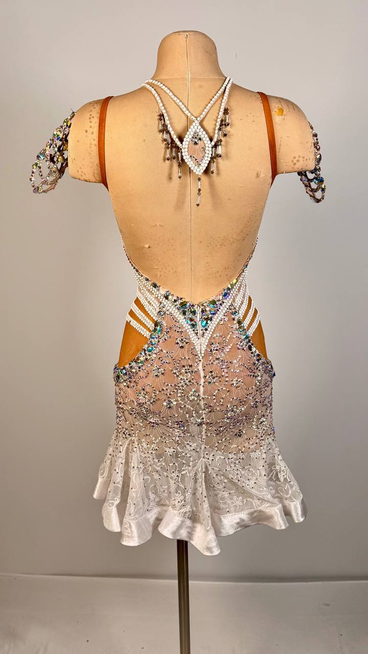 Perfectly suited for dancers approximately 163 cm to 173 cm in height, this Size S dress is in used-like new condition, offering both comfort and effortless sophistication. Step onto the floor in Winter Lace — a dress that embodies purity, elegance, and unforgettable stage presence. 🤍✨